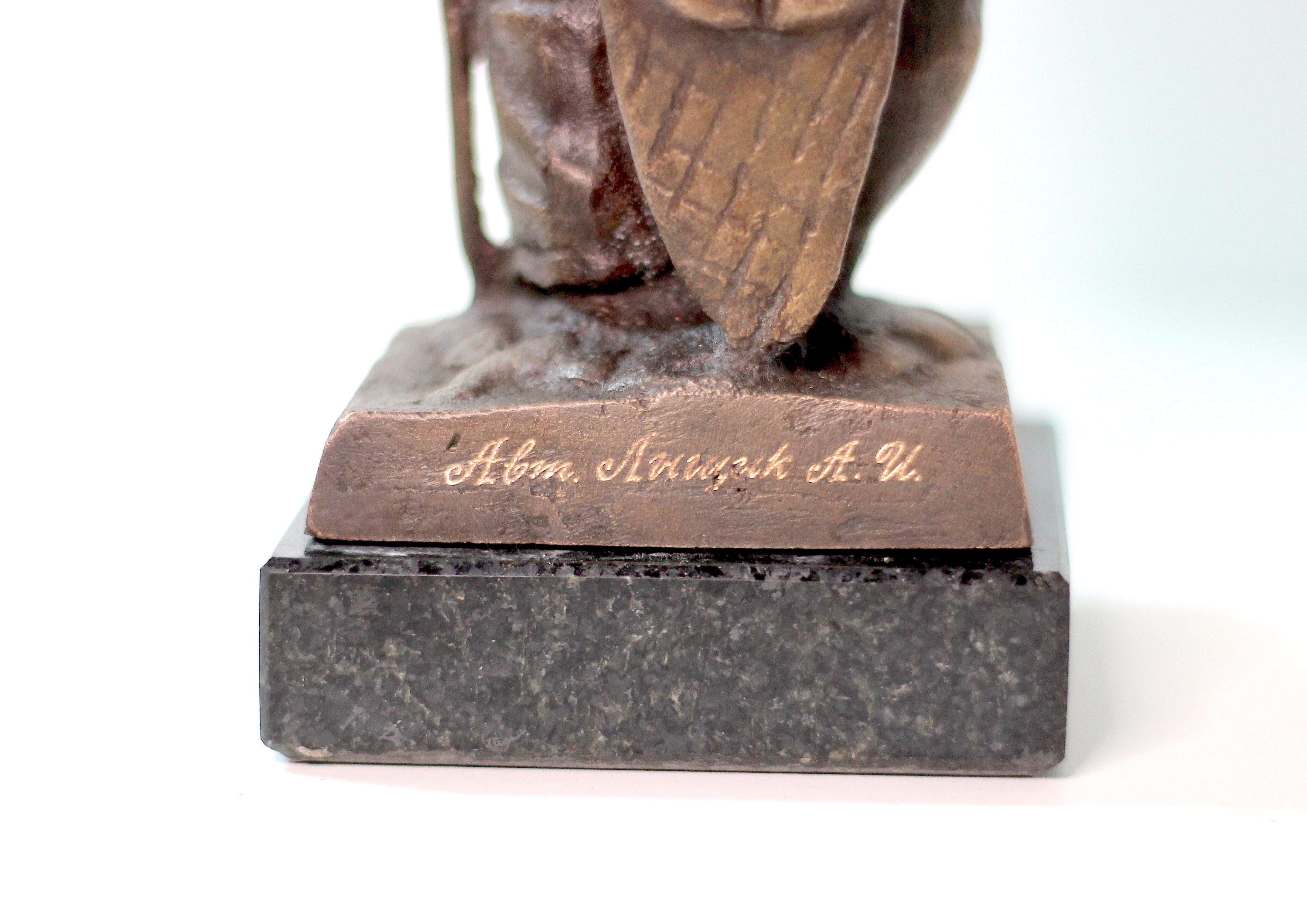 Бронзовая скульптура на гранитной подставке.