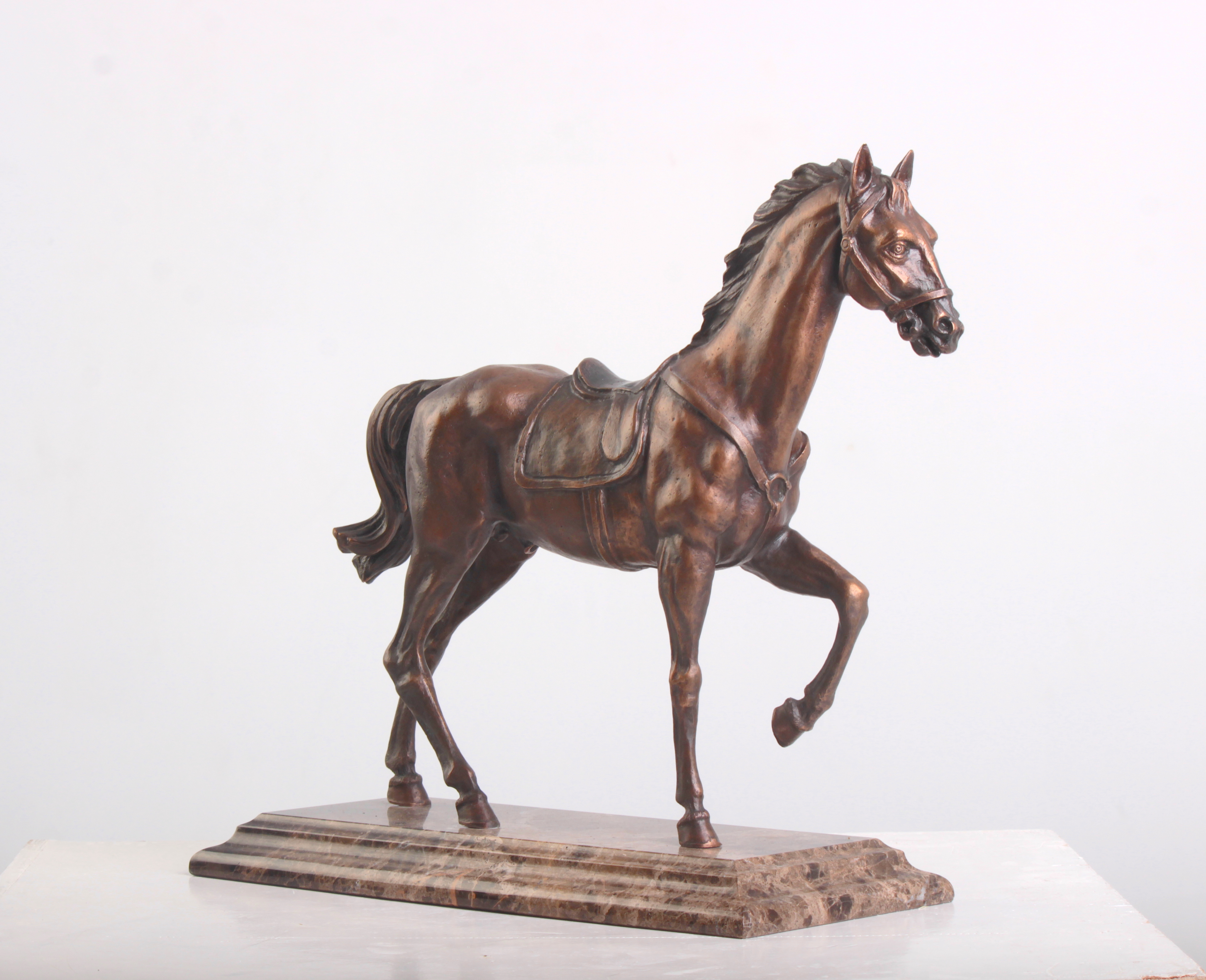 Бронзовая скульптура "Конь" на мраморной подставке.